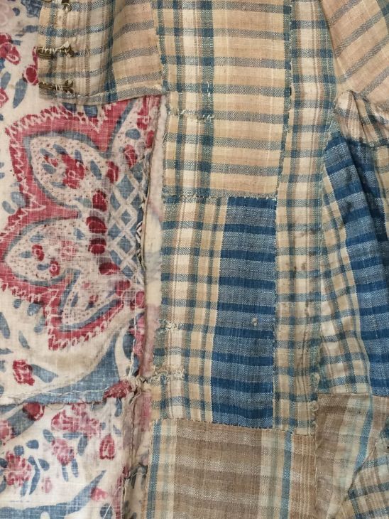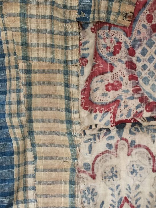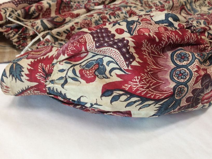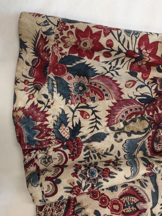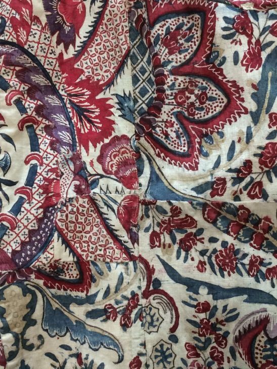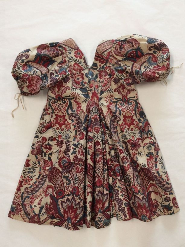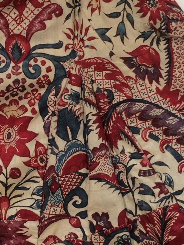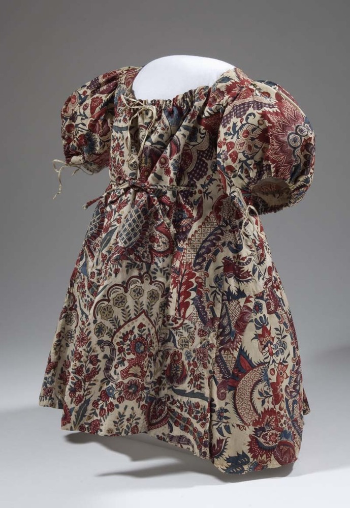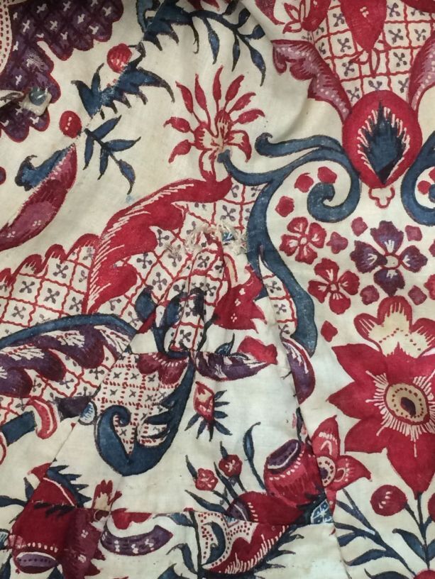 Sitsen Empire kinderjakje, gemaakt van 76 lapjes van diverse symmetrische patronen uit het begin van de 18de eeuw op witte grond