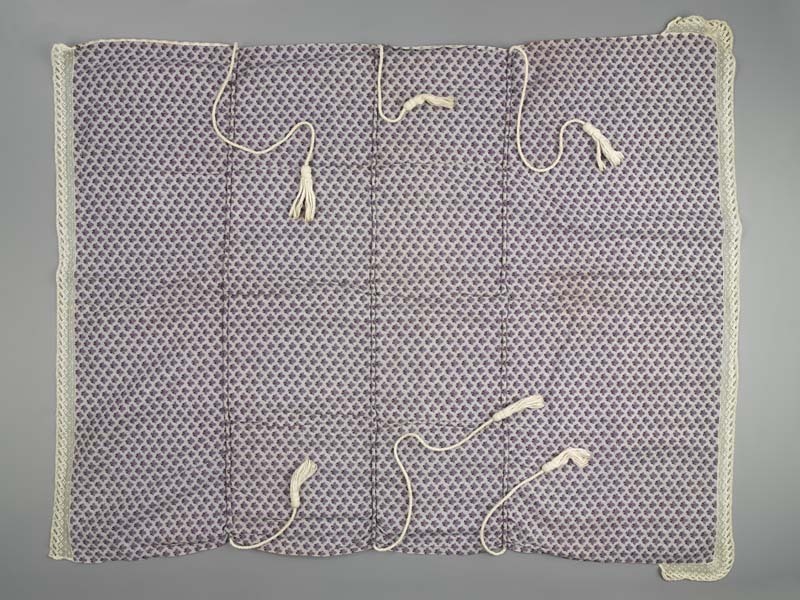 Pakdoek van bedrukt katoen met lila gespikkelde grond met blaadjes, met machinaal kant