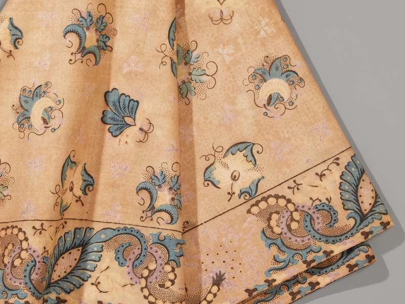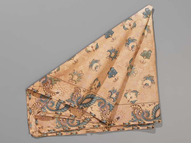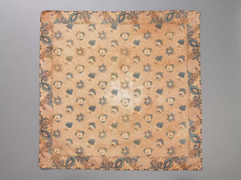 Vierkante bedrukte katoenen doek of sjaal, oorspronkelijk crème grond met lichtblauwe florale motieven