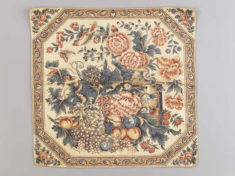 Vierkante bedrukt katoenen doek of sjaal met bloemstilleven met druiven