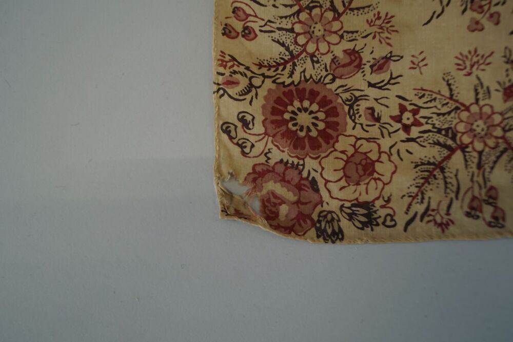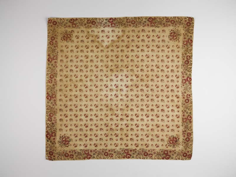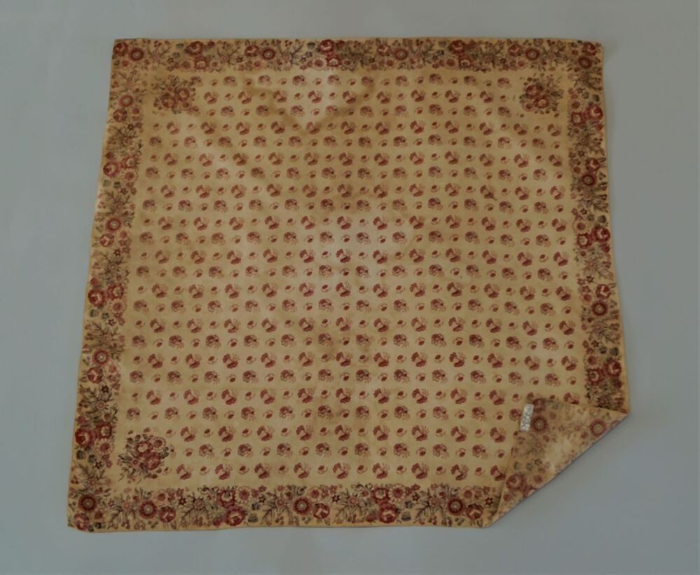 Vierkante bedrukt katoenen doek of sjaal met roze-rode florale motieven op witte grond