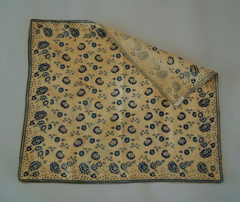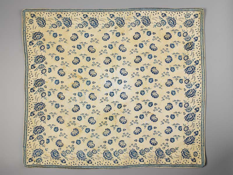 Vierkante bedrukte katoenen doek of sjaal met hardblauwe bloemmotieven