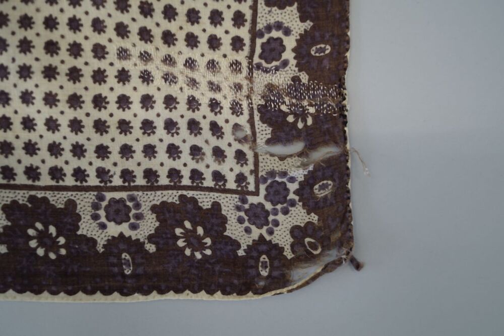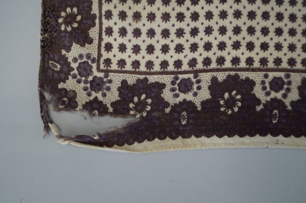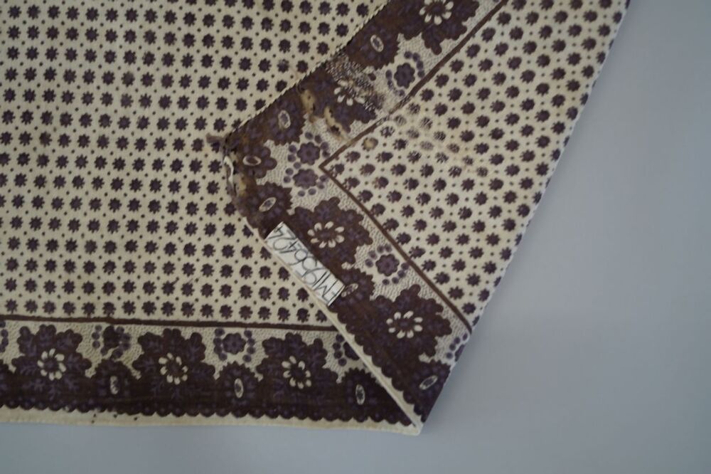 Vierkante bedrukte katoenen doek of sjaal met sterretjes en bloemenrand in paars