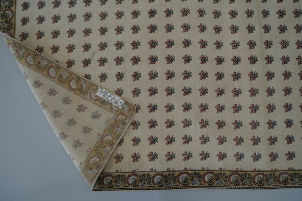 Vierkante veelkleurig bedrukte katoenen doek of sjaal met gestileerd kasjmier motiefjes