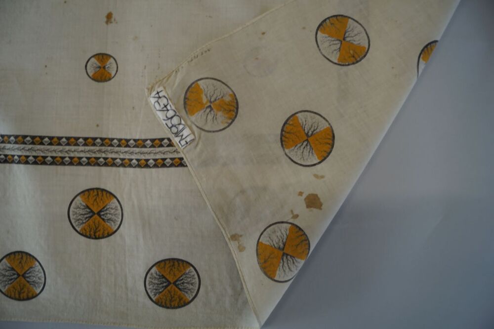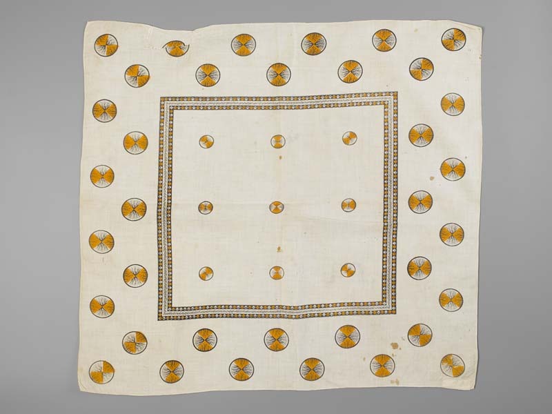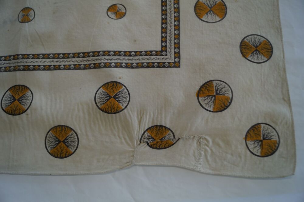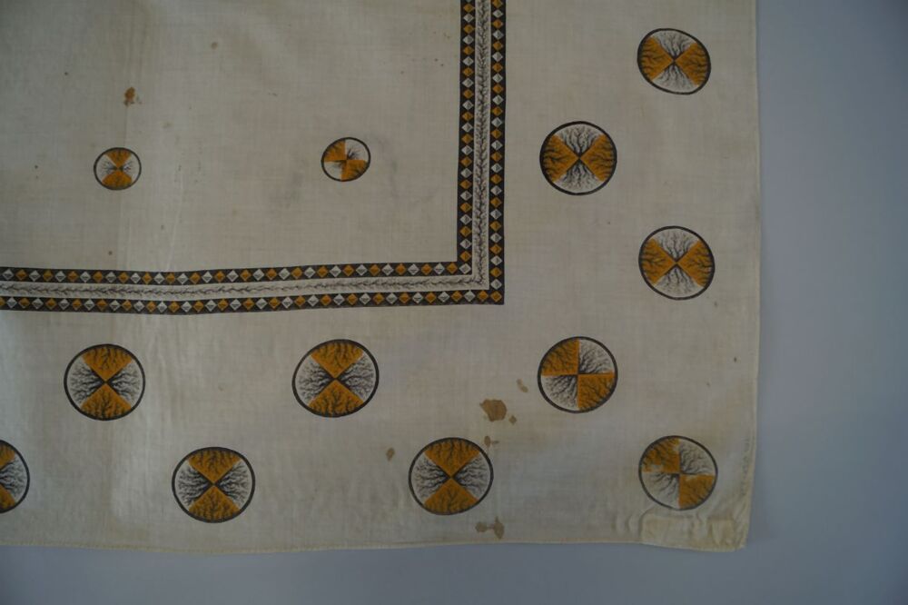 Vierkante bedrukte katoenen doek of sjaal met cirkels in wit, geel en bruin