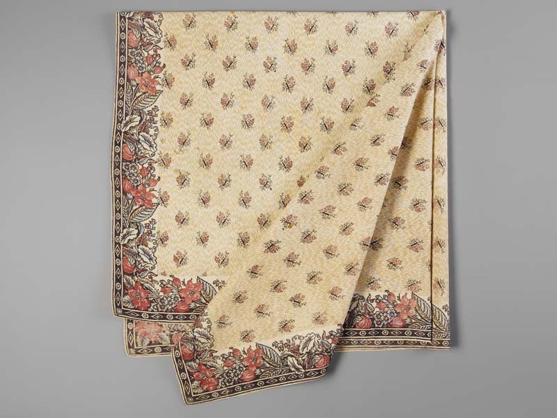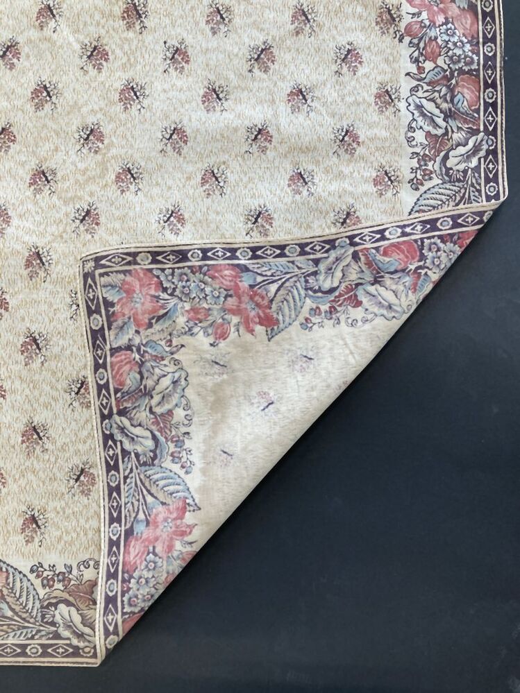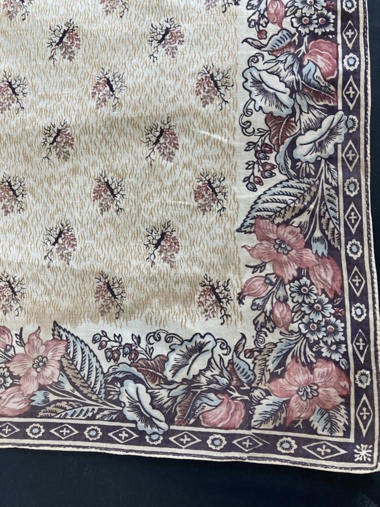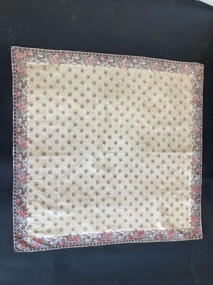 Vierkante veelkleurig bedrukt katoenen doek of sjaal met bloemenrand en strooimotieven