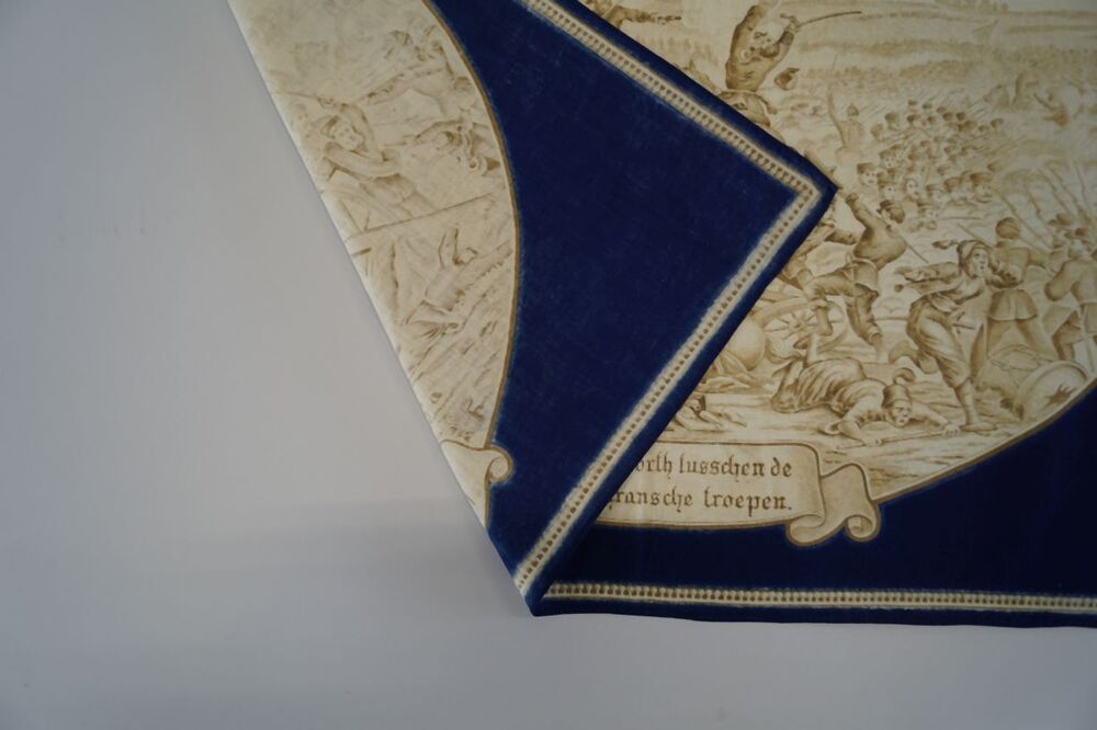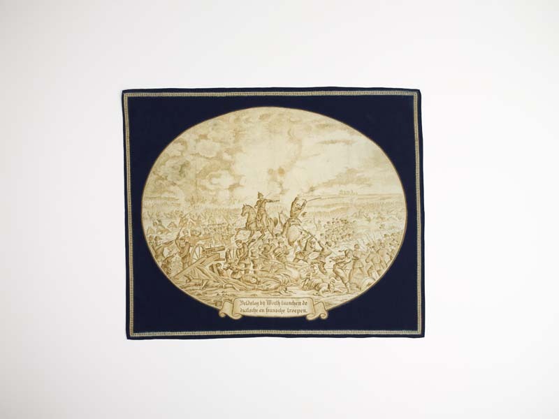 Gedenkdoek van bedrukt katoen in de kleuren bruin-wit en donkerblauw met de Veldslag bij Wörth