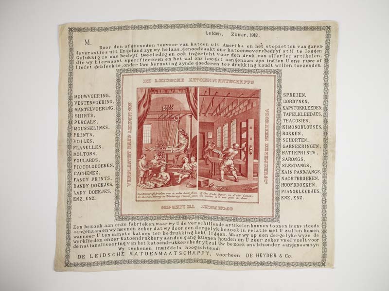 Reclamedoek van bedrukte katoen, met Leiden in de zomer van 1918