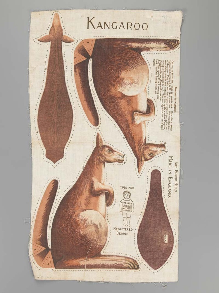Katoenen doekje bedrukt in zwart en bruin met de voorstelling van en kangeroe