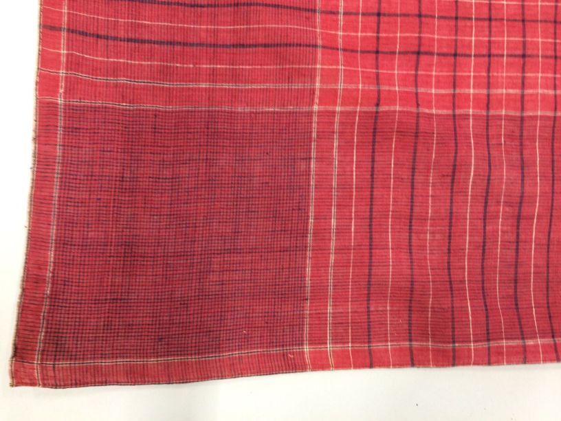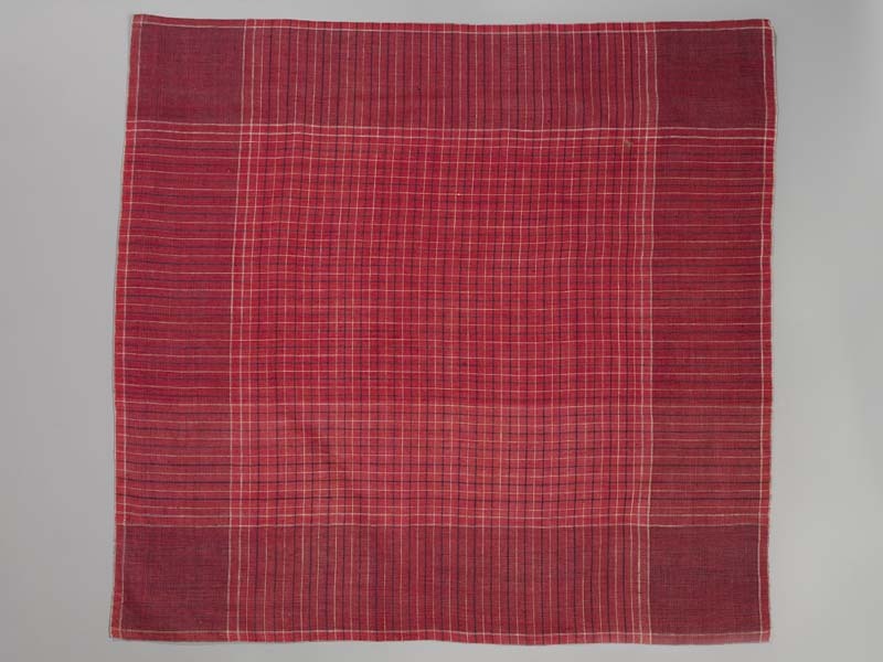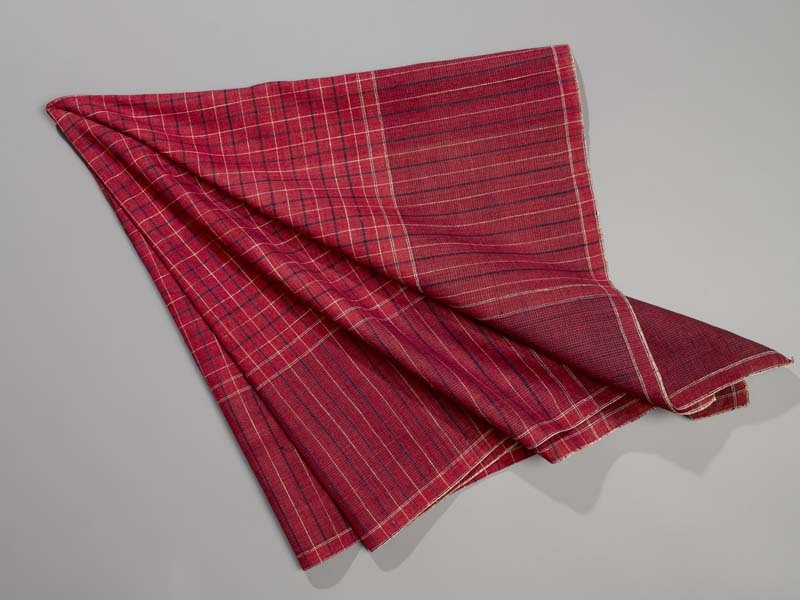 Hindelooper sondook met ingeweven ruit in rood, blauw en wit met 'lapkede mei greet krabbede'