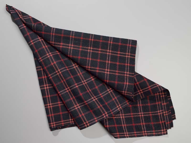 Hindelooper sondook met ingeweven ruit in donkerblauw met rood en wit