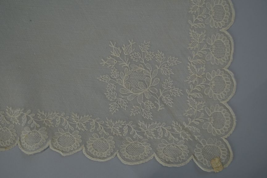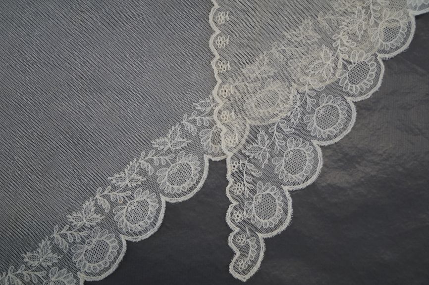 Fichu versierd met tamboereerwerk en tule doorstopwerk