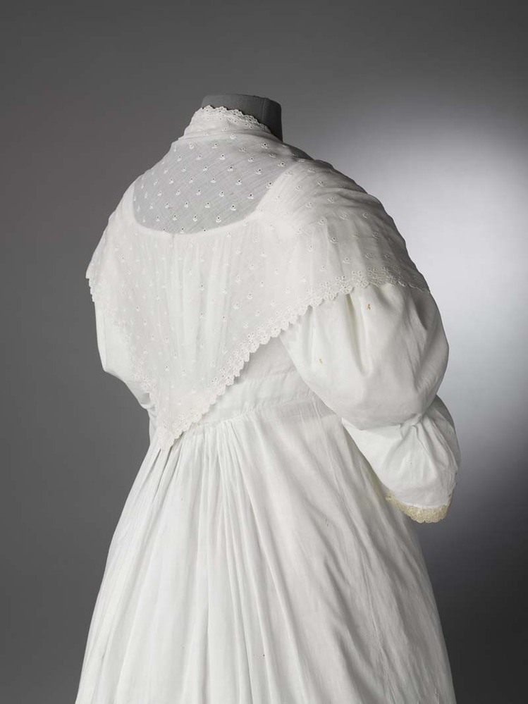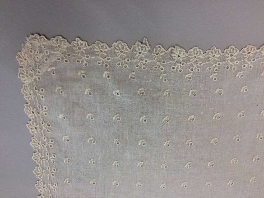 Fichu met Engels borduurwerk, doek is bezaaid met kleine gaatjes met een takje