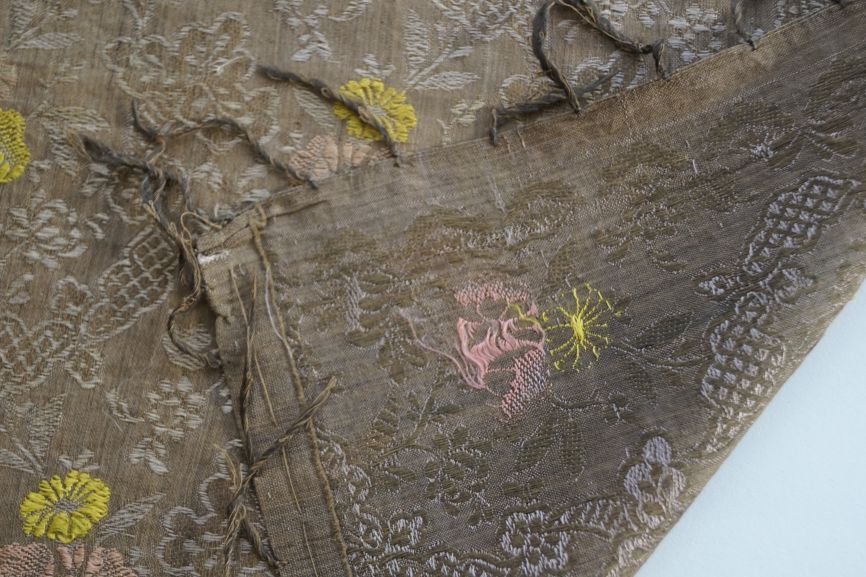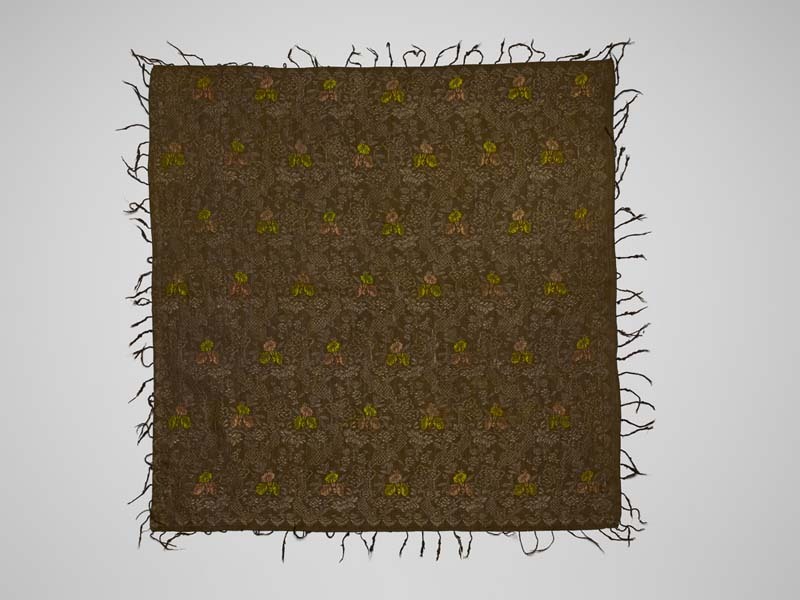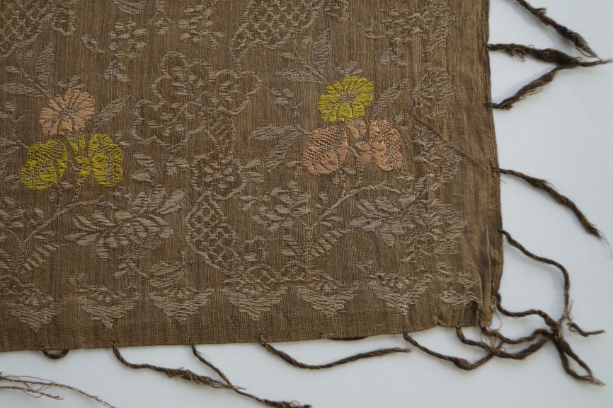 bruine sjaal met ingeweven doorlopend bloemenpatroon