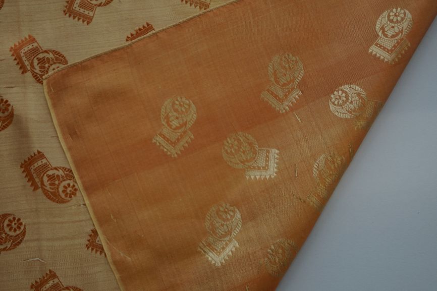 Sjaal met ingeweven strooimotieven van changeant oranje en gele zijde