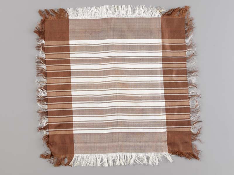 gestreept zijden sjaaltje in keper geweven in bruin, creme en wit