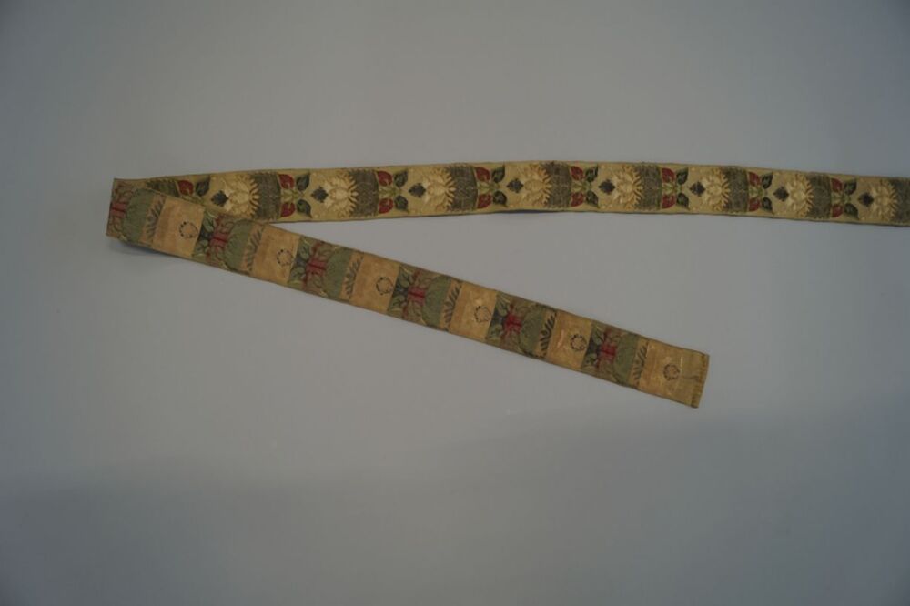Algemeen te gebruiken voor lange, dunne, platte en soepele repen van een willekeurig materiaal. Specifiek te gebruiken voor repen fijn textiel, zoals zijde, satijn of fluweel, vaak afgewerkt met een koordje langs beide randen in plaats van met een zelfkant. Wordt gewoonlijk als versiering gebruikt. (AAT)