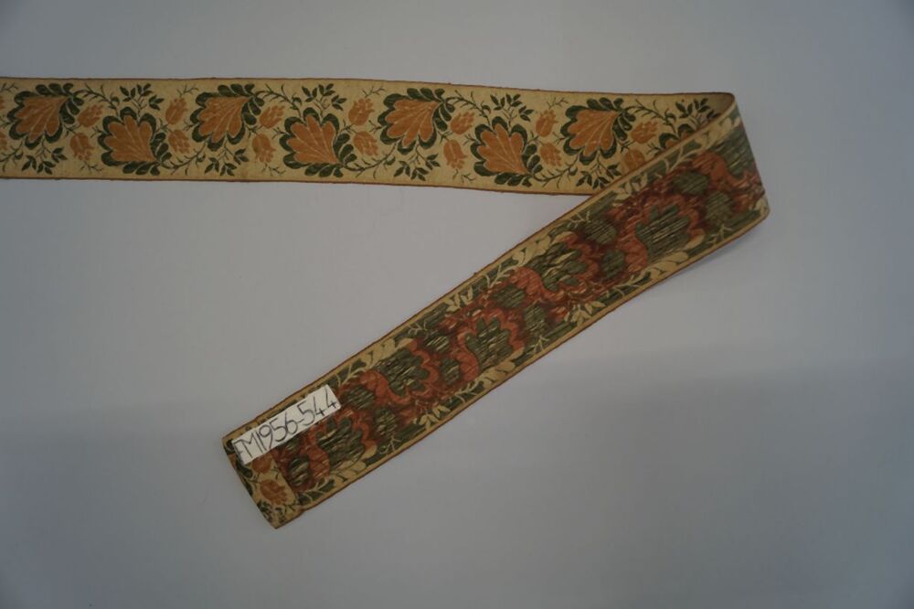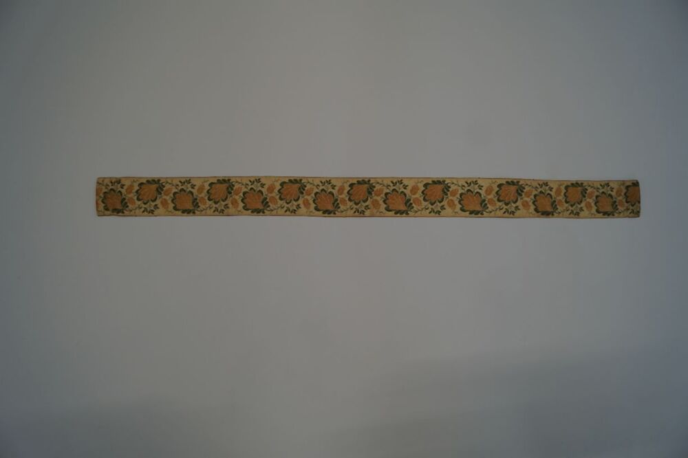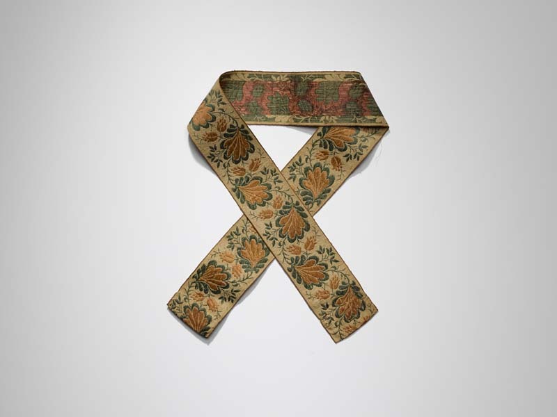 gebloemde ceintuur van wol met zijde en ingeweven bloemen in de kleuren crème, steenrood en groen