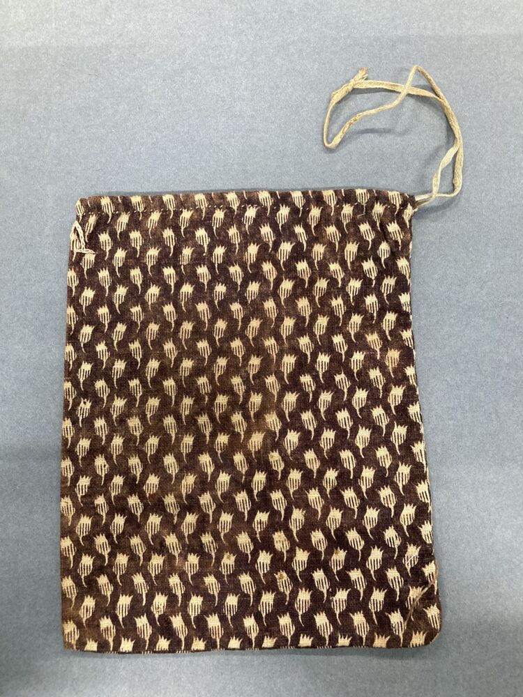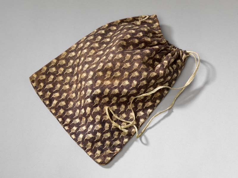Tasje of pongetje van paars-bruine sits met kleine tulpjes