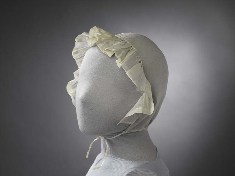 Neteldoeken muts met gerimpelde strook langs het gezicht