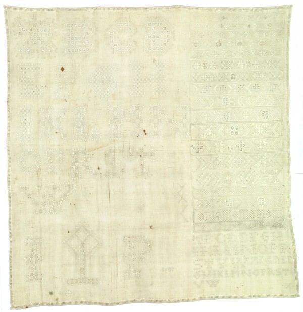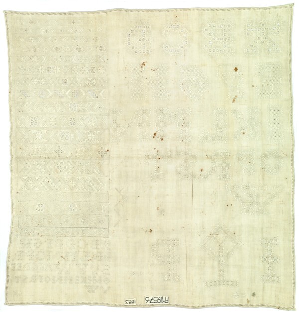 Sneewerklap met opengewerkte letters, onaf, gemerkt I.P., 1683