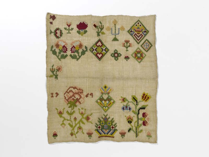 Textielwerken, meestal van fijne stof, waarop door vrouwen en meisjes in verschillende steken is geborduurd en die bedoeld zijn om in te lijsten. Ze werden doorgaans gemaakt door beginnelingen om hun vaardigheden te tonen. Kenmerkend zijn een combinatie van steken, motieven, letters en verzen, en vaak de voltooiingsdatum en de naam van de borduurster. (AAT-Ned) https://data.cultureelerfgoed.nl/term/id/cht/9af3e18e-7bc8-40d2-87ca-8eef2dfe2bc3