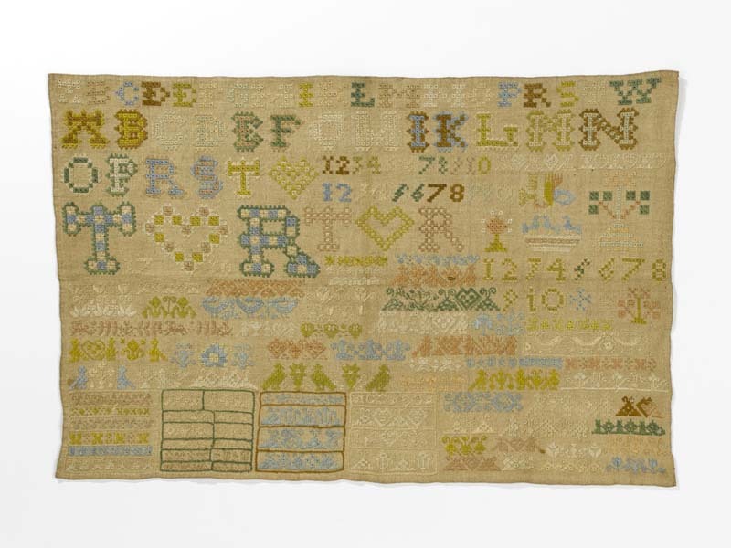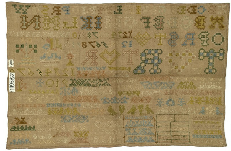 Witwerklap in kleur met hemdsboordranden, gemerkt T.R., 1710