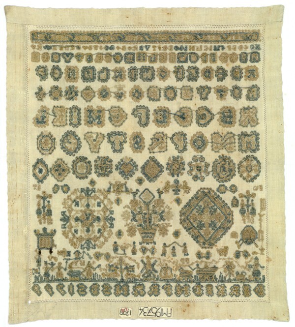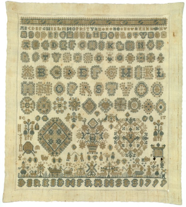 Merkletterlap in beige met blauw, gemerkt Dirkien Franses, 1799