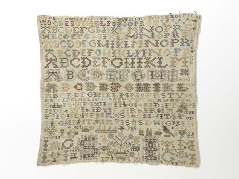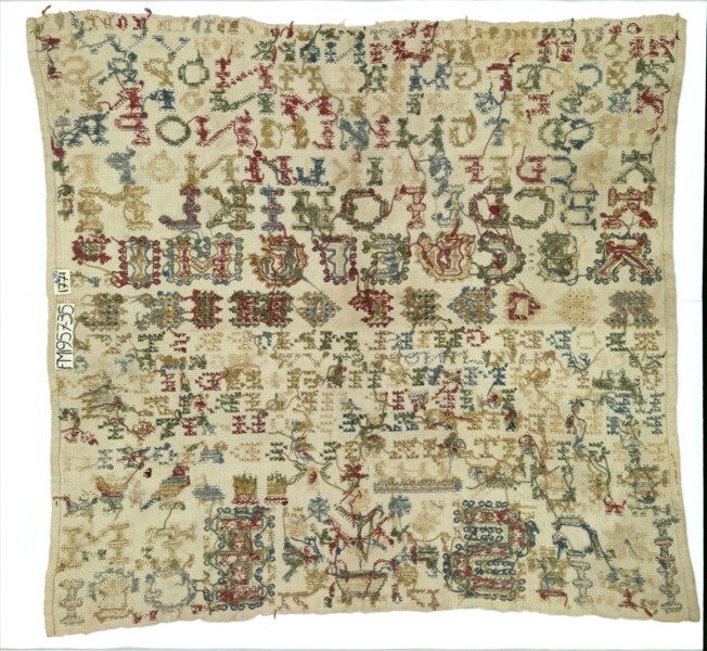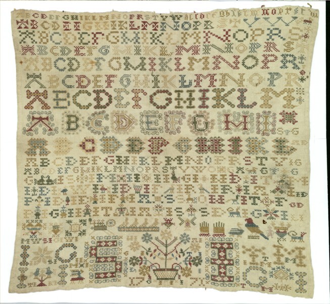 Lettermerklap vol met veel initialen, gemerkt S.I, 1771