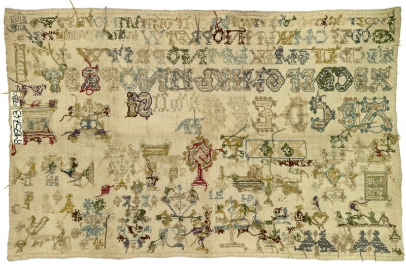Merkletterlap met spinnewiel, wieg en kussenkast, gemerkt S.I., 1780