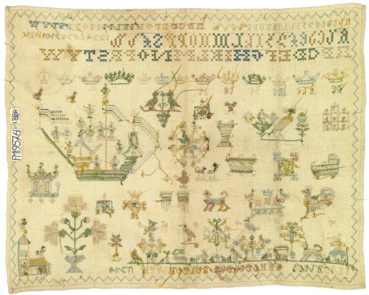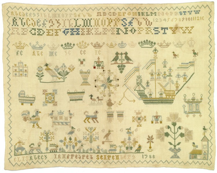 Merkletterlap met grondje en schip, gemerkt ‘elisabech ianfredrec seirenberg’, 1788