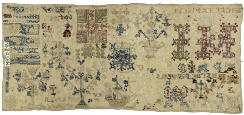 Textielwerken, meestal van fijne stof, waarop door vrouwen en meisjes in verschillende steken is geborduurd en die bedoeld zijn om in te lijsten. Ze werden doorgaans gemaakt door beginnelingen om hun vaardigheden te tonen. Kenmerkend zijn een combinatie van steken, motieven, letters en verzen, en vaak de voltooiingsdatum en de naam van de borduurster. (AAT-Ned)