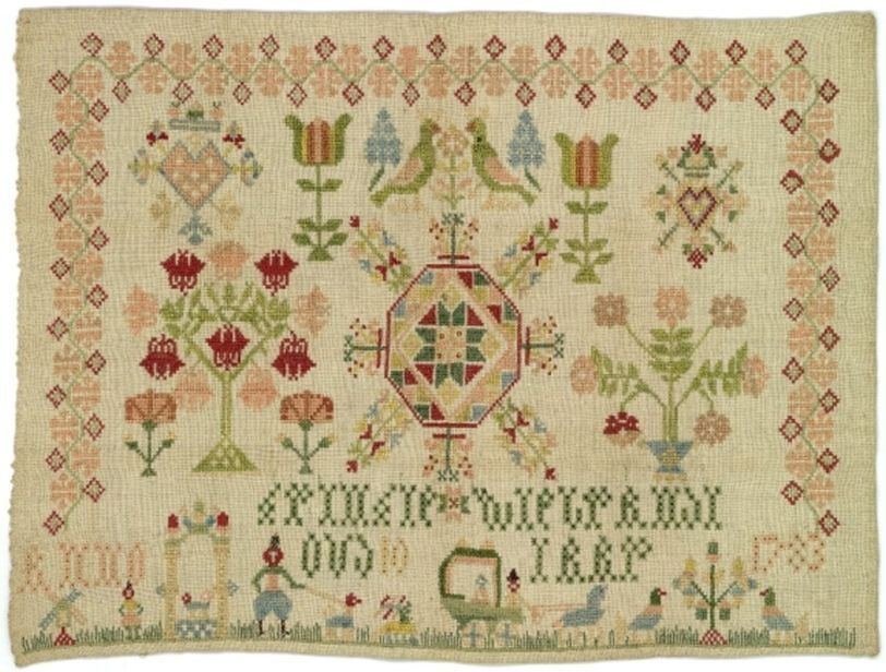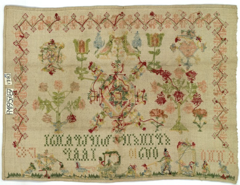 Merklap met centraal geometrisch motief van Trintie Wiebrandi, 1783