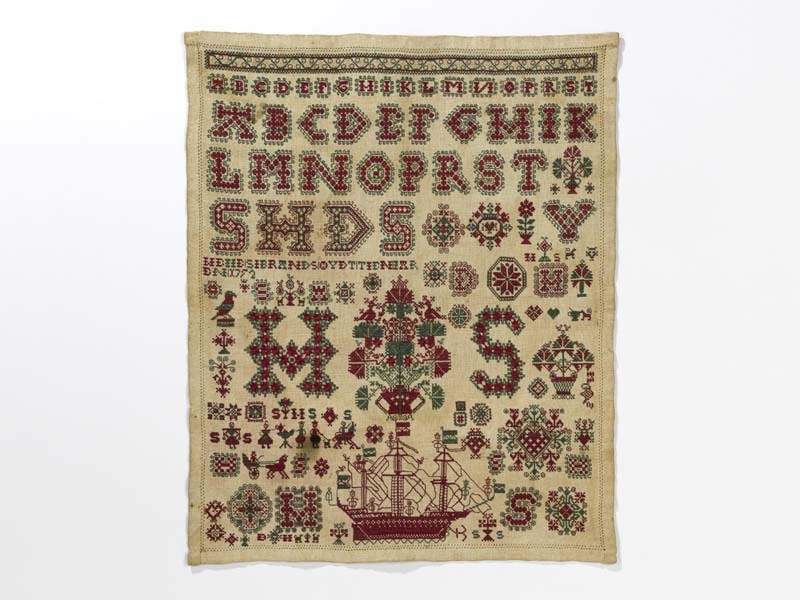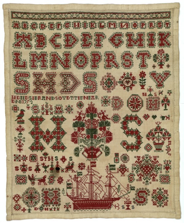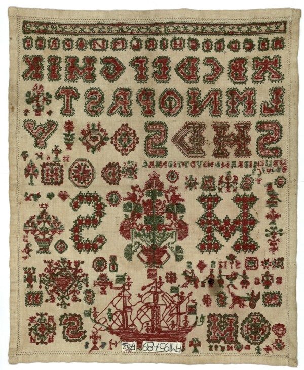 Merkletterlap, rood met groen, gemerkt Heije Sibrands, 1752