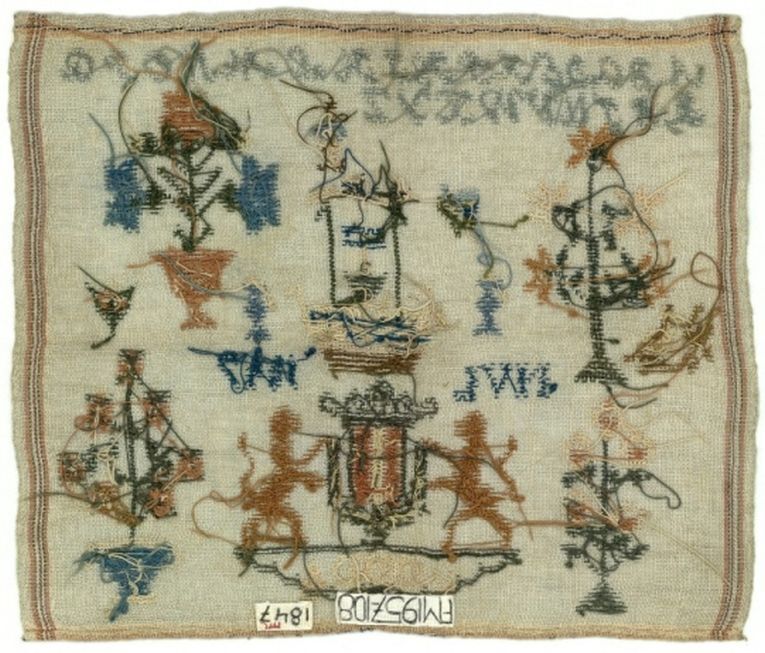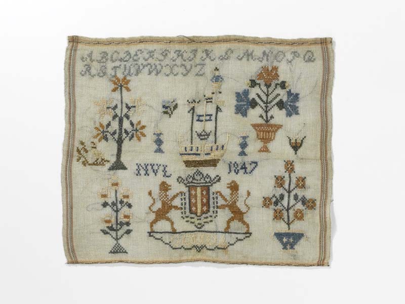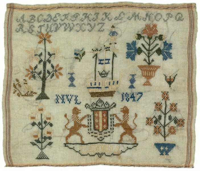 Merkletterlap op stramien met wapen van Gouda, gemerkt N.V.L. 1847