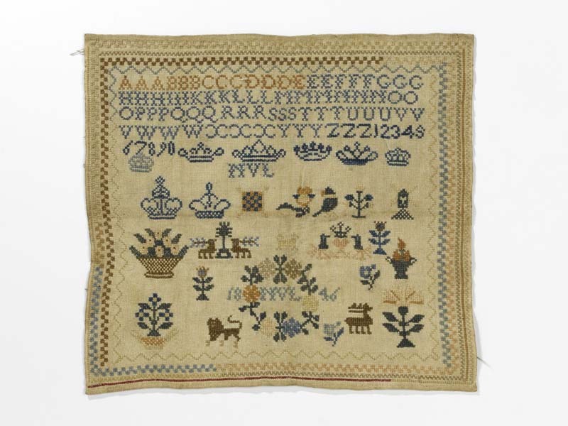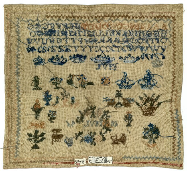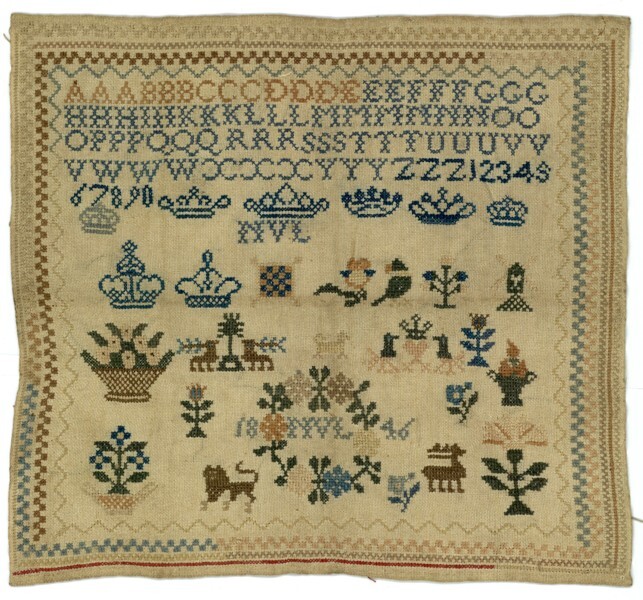 Merkletterlap in blauw en bruin, gemerkt N.V.L. 1846