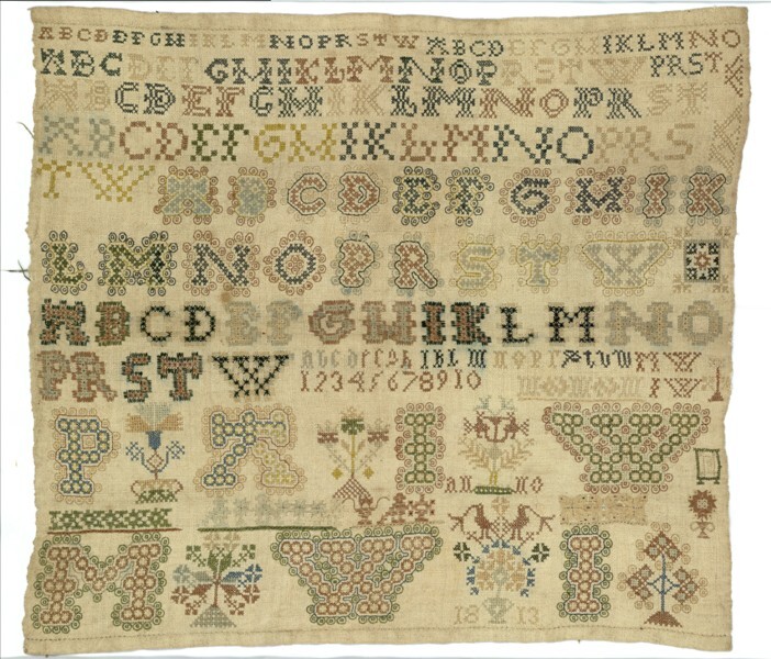 Lettermerklap met grote initialen, gemerkt M.W.I., 1813
