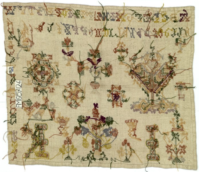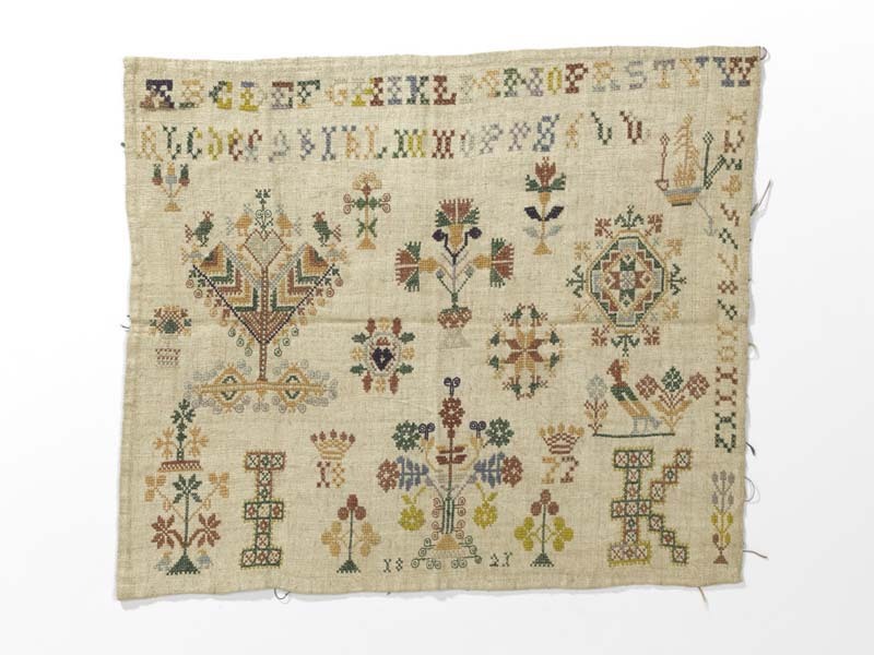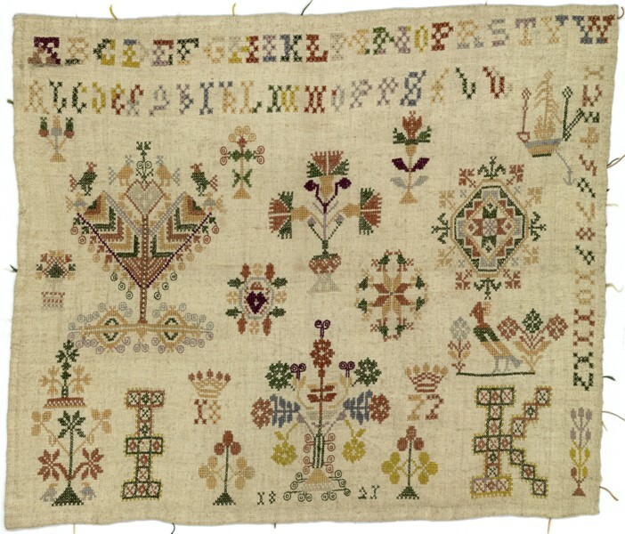 Merkletterlap met dwarse rij cijfers, gemerkt I.K. 1820-1822