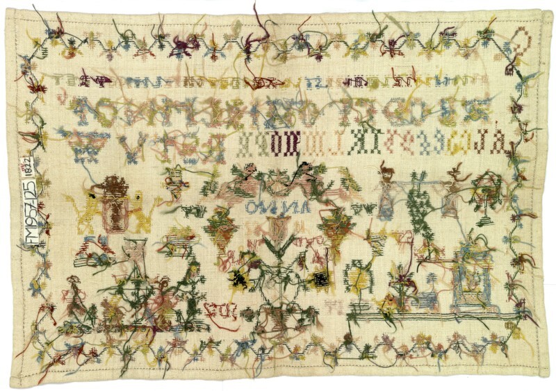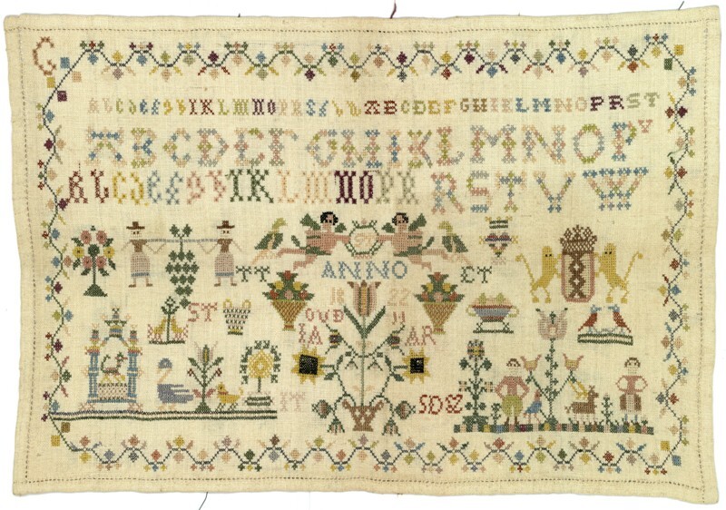 Merkletterlap met rand rondom en twee grondjes, gemerkt S.T. anno 1822