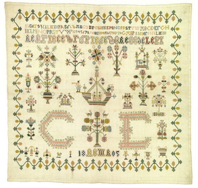 Merkletterlap met grote initialen, C.E. 1805