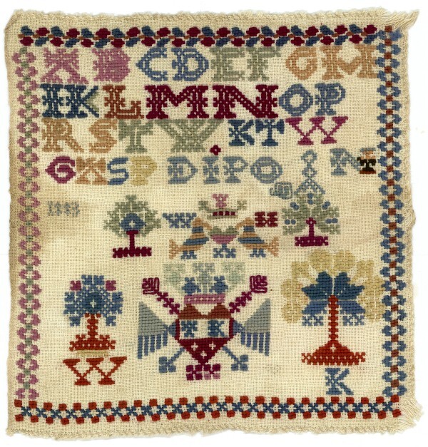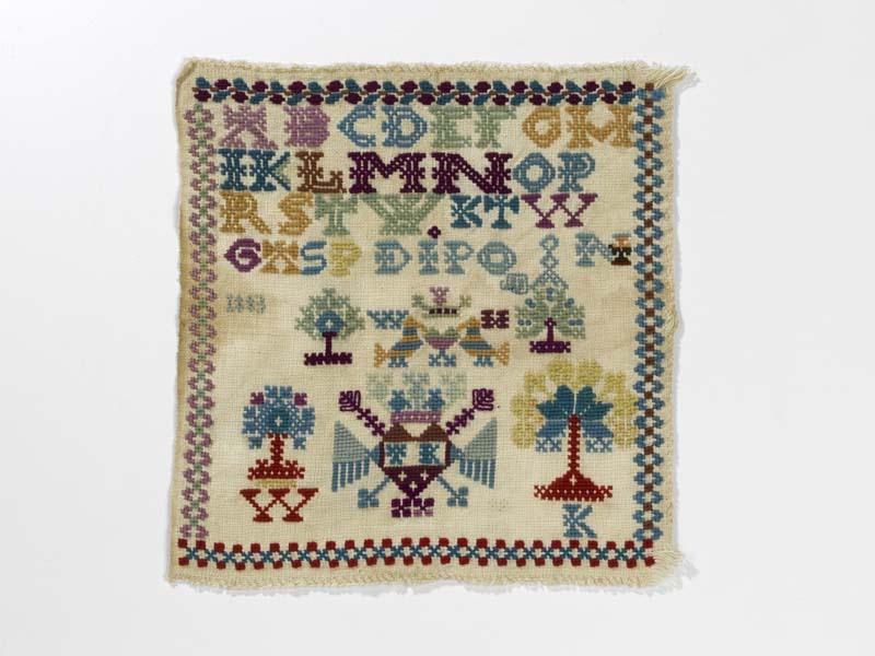 Merkletterlap met rondom verschillende randen, gemerkt W.K. 1883