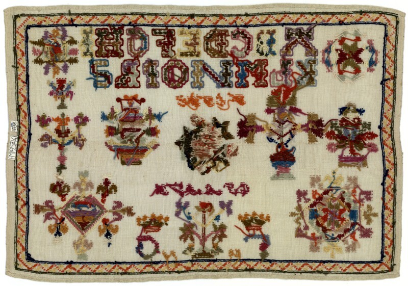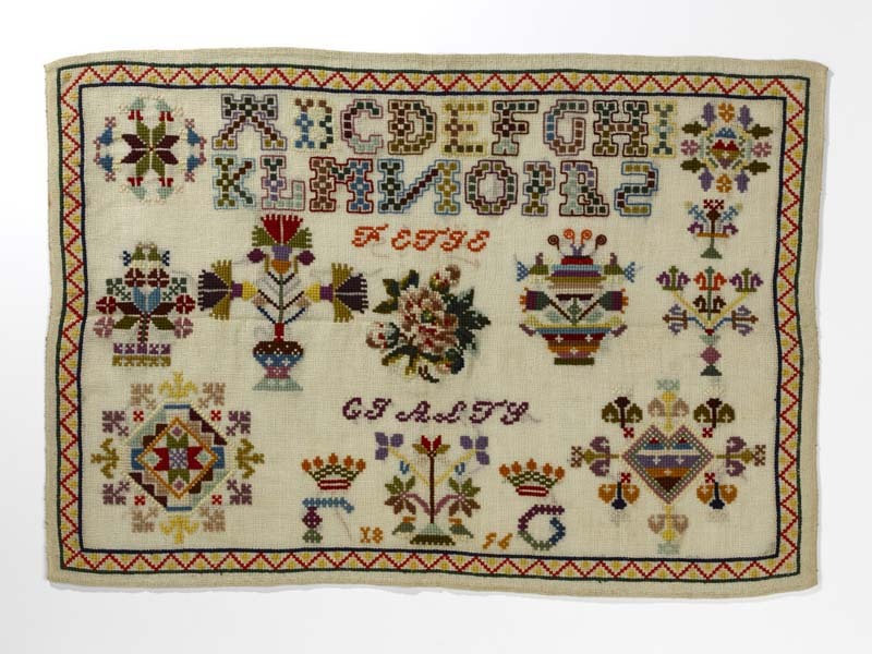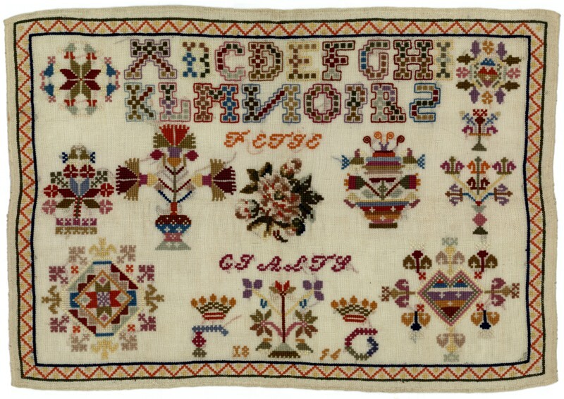 Merkletterlap met wol, gemerkt Fetje Gjalts, 1856