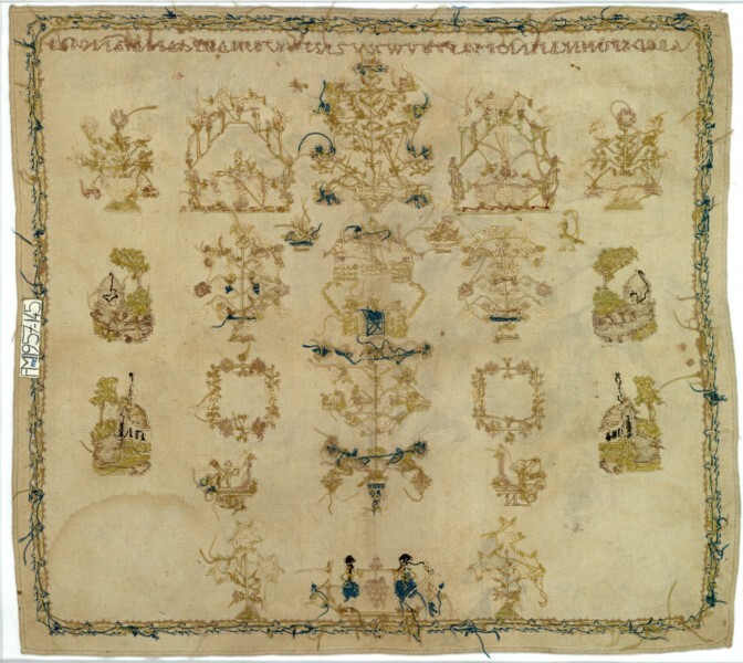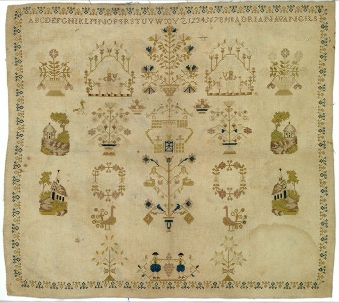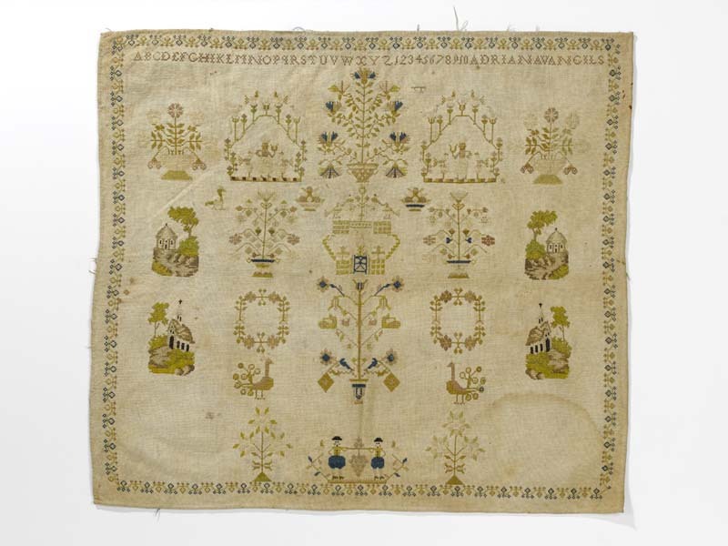 Merkletterlap, met rand rondom en naturalistische motieven, gemerkt Adriana van Gils, ongedateerd