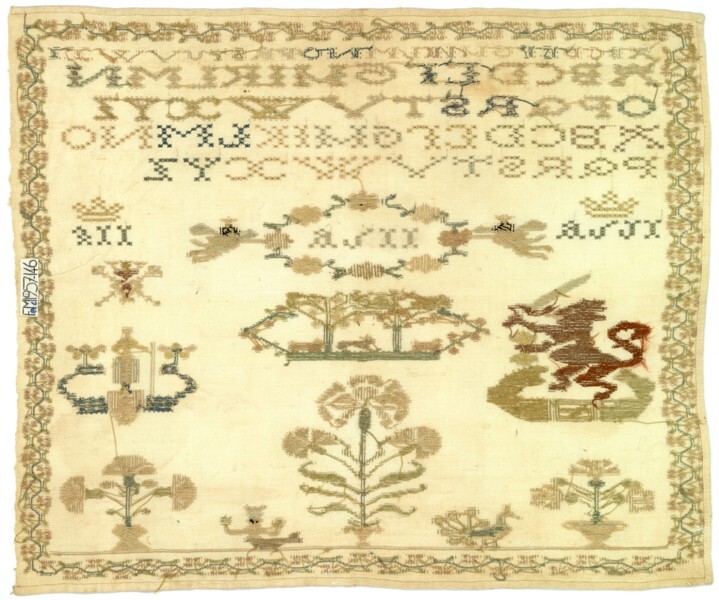 Merkletterlap met platgedrukte motieven, gemerkt I.I.v.A. ongedateerd