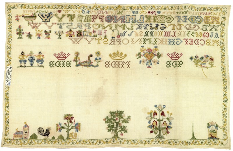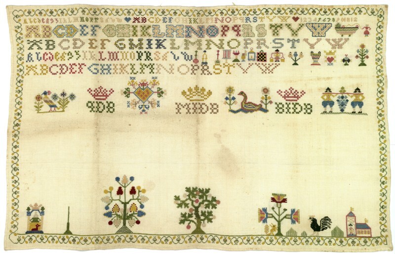 Merkletterlap, veelkleurig, onaf, gemerkt M.I.D.B. ongedateerd