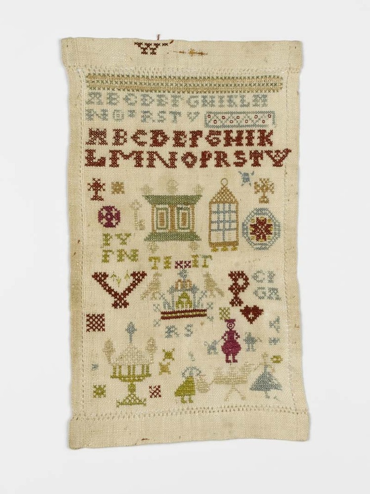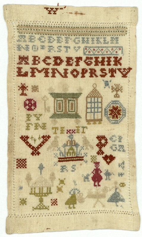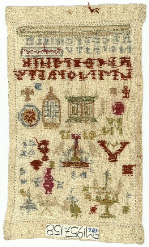 Miniatuur merkletterlapje met kast en theetafel, V.P. ongedateerd