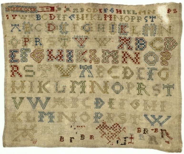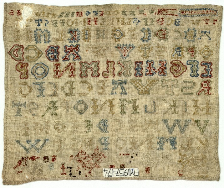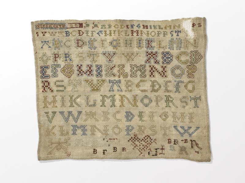 Kleine letterlap met zes alfabetten achter elkaar aan geborduurd, gemerkt B.R, ongedateerd