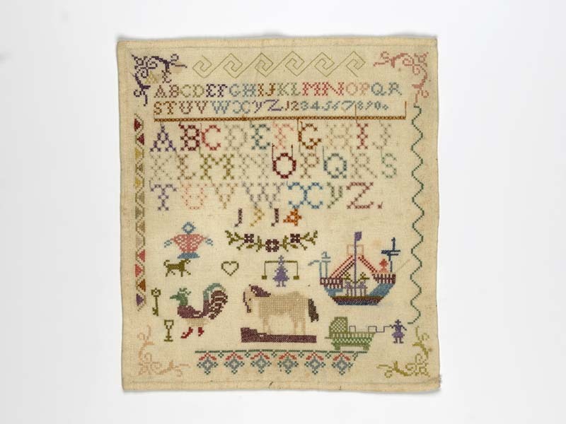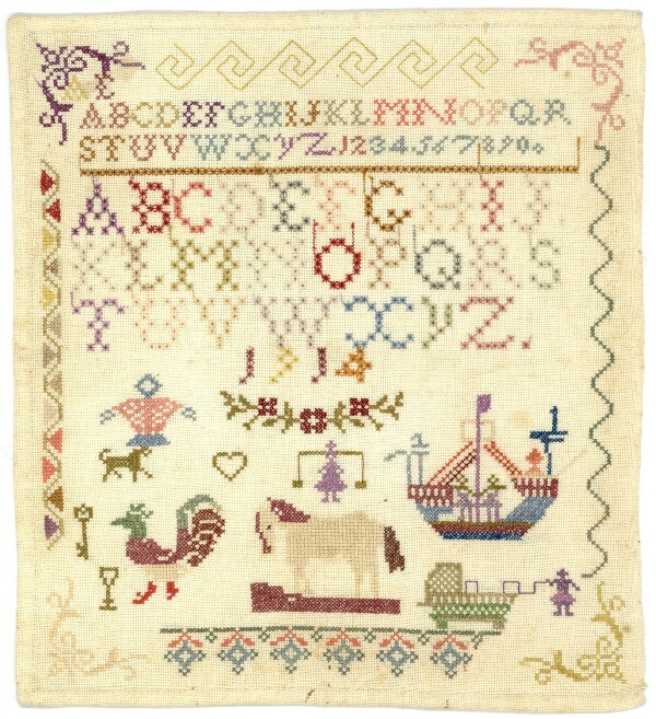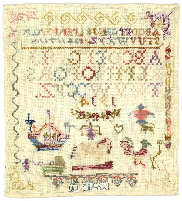 Merkletterlap met paard en schip, gemerkt A.E. 1914
