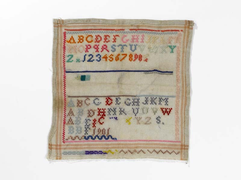 Letterlapje op gaas, met wol geborduurd, datering 1901