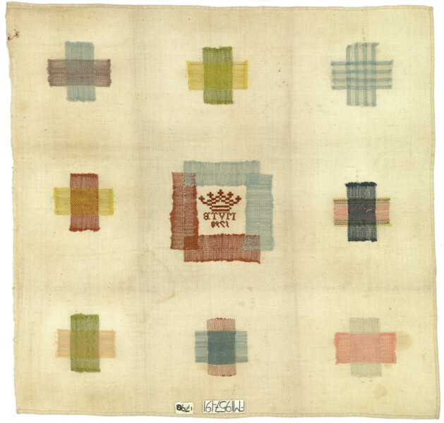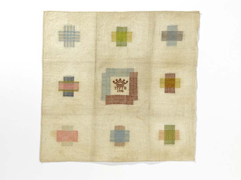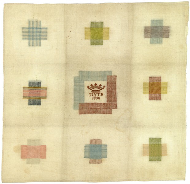 Stoplap van katoen, negen stoppen met zijden garen, gemerkt MVTB 1790